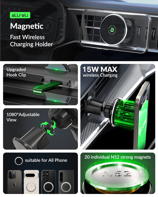 Car Mount Charger 15W Wireless Dash+Vent Charger fit Magsafe