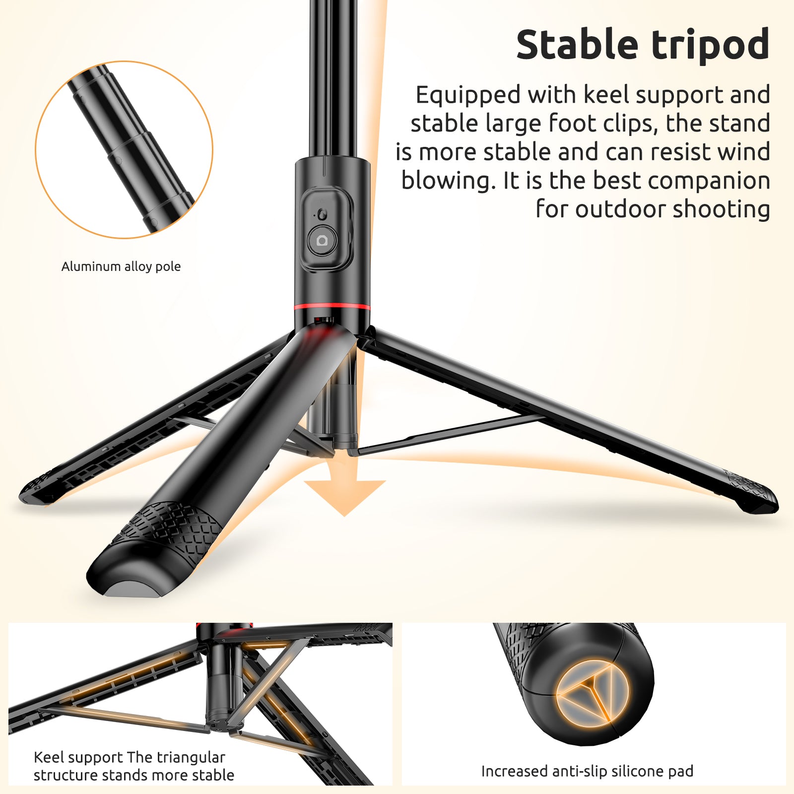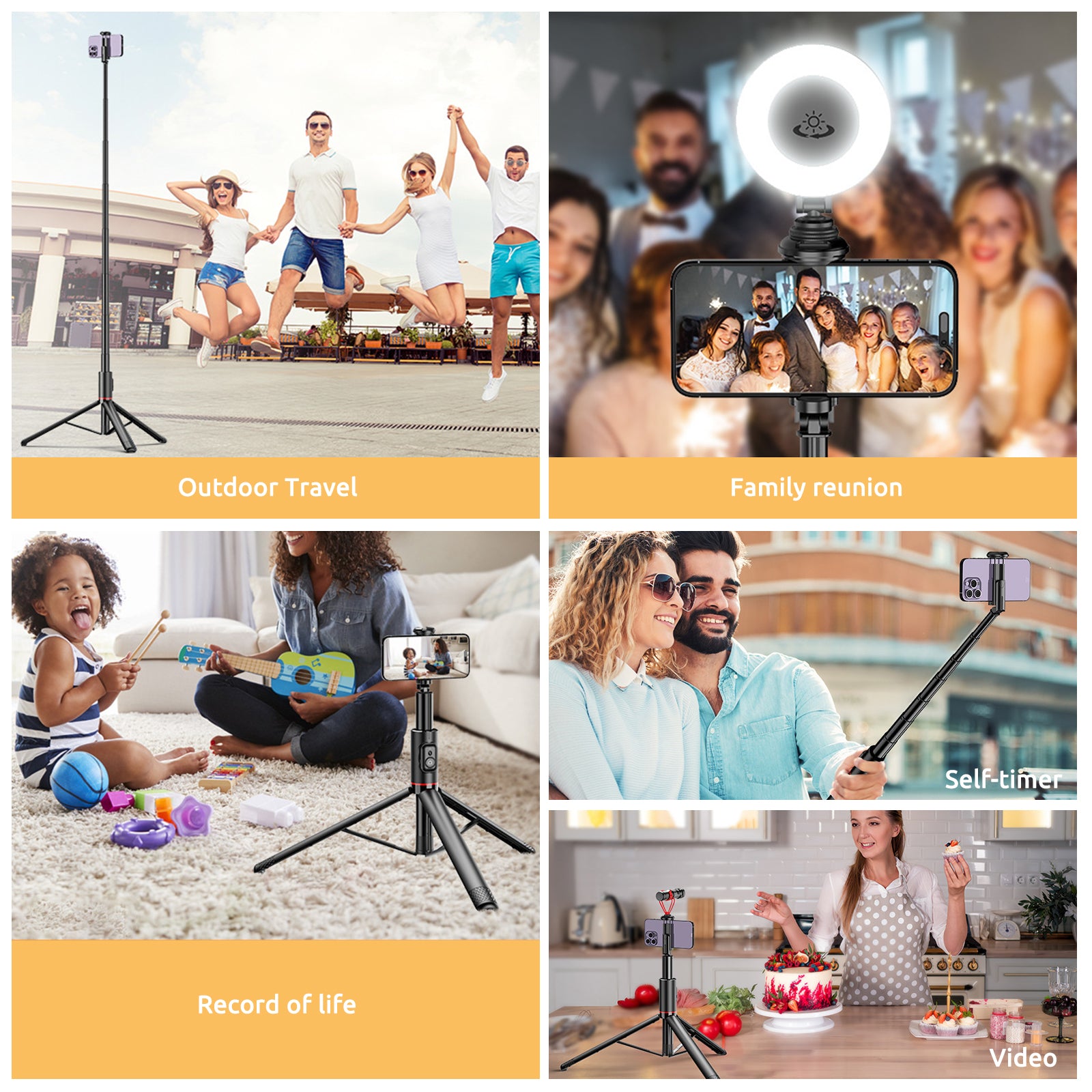 Capture every moment effortlessly with the aLLreLi 72" Phone Tripod and Portable Selfie Stick. This versatile device is perfect for selfies, videos, photos, live streams, and vlogs. Compatible with iPhone 15/14/13 and Android devices, it features a universal cold shoe mount for added flexibility. The included remote ensures you can take the perfect shot from a distance. Whether you're a professional vlogger or just love taking photos, this tripod is your go-to tool for capturing high-quality content. Available in sleek black.